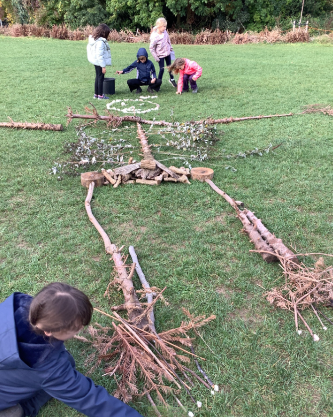 This week, UK and USA explored making stick and spine mini shelters in the woodland area. They worked so well in their teams!