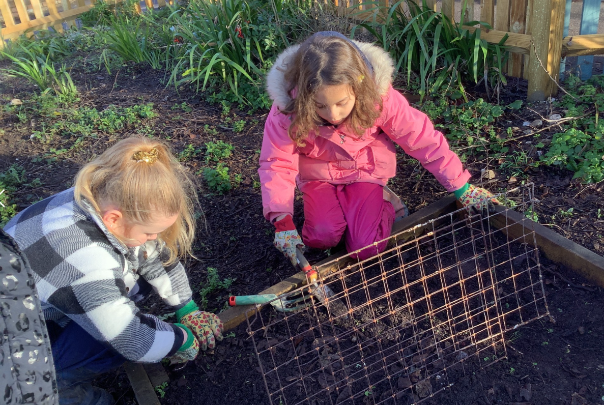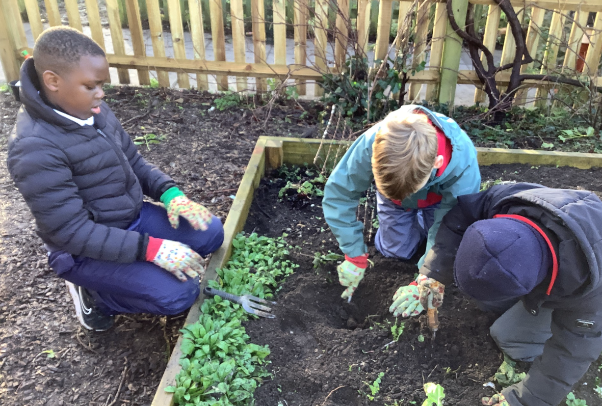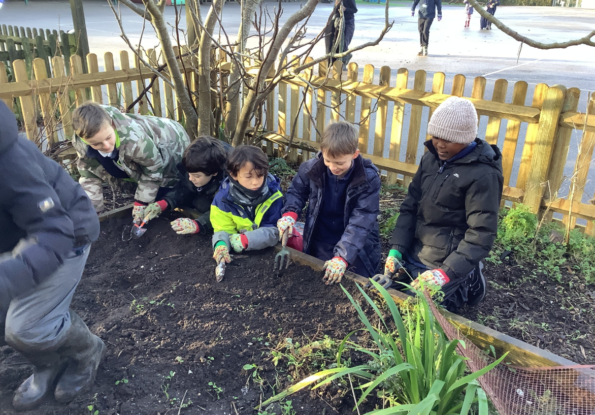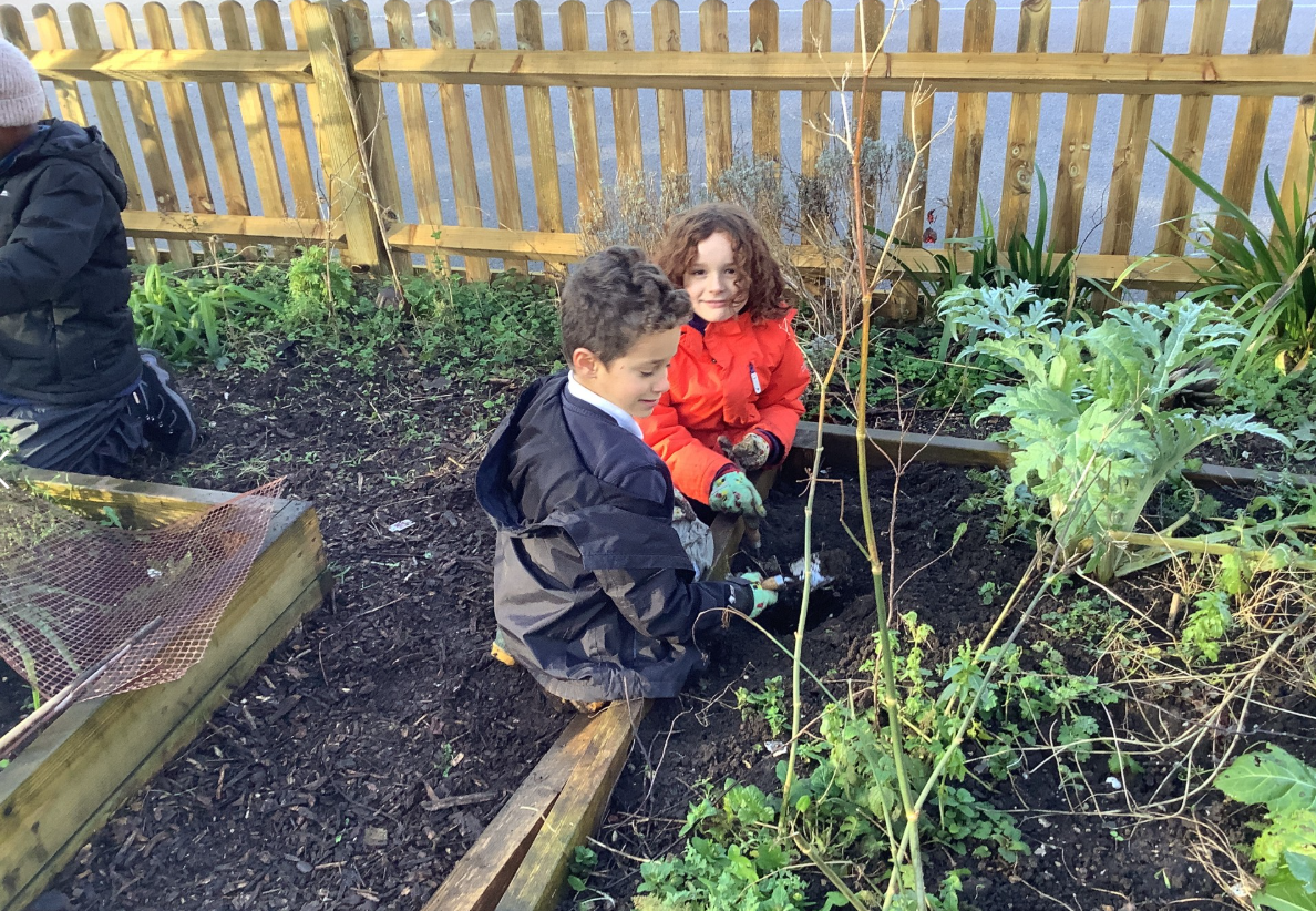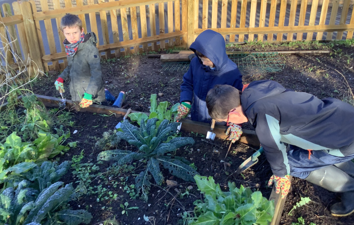 Orbit class helped to prepare the bed in the kitchen garden. They were then able to sow broad beans and garlic.
