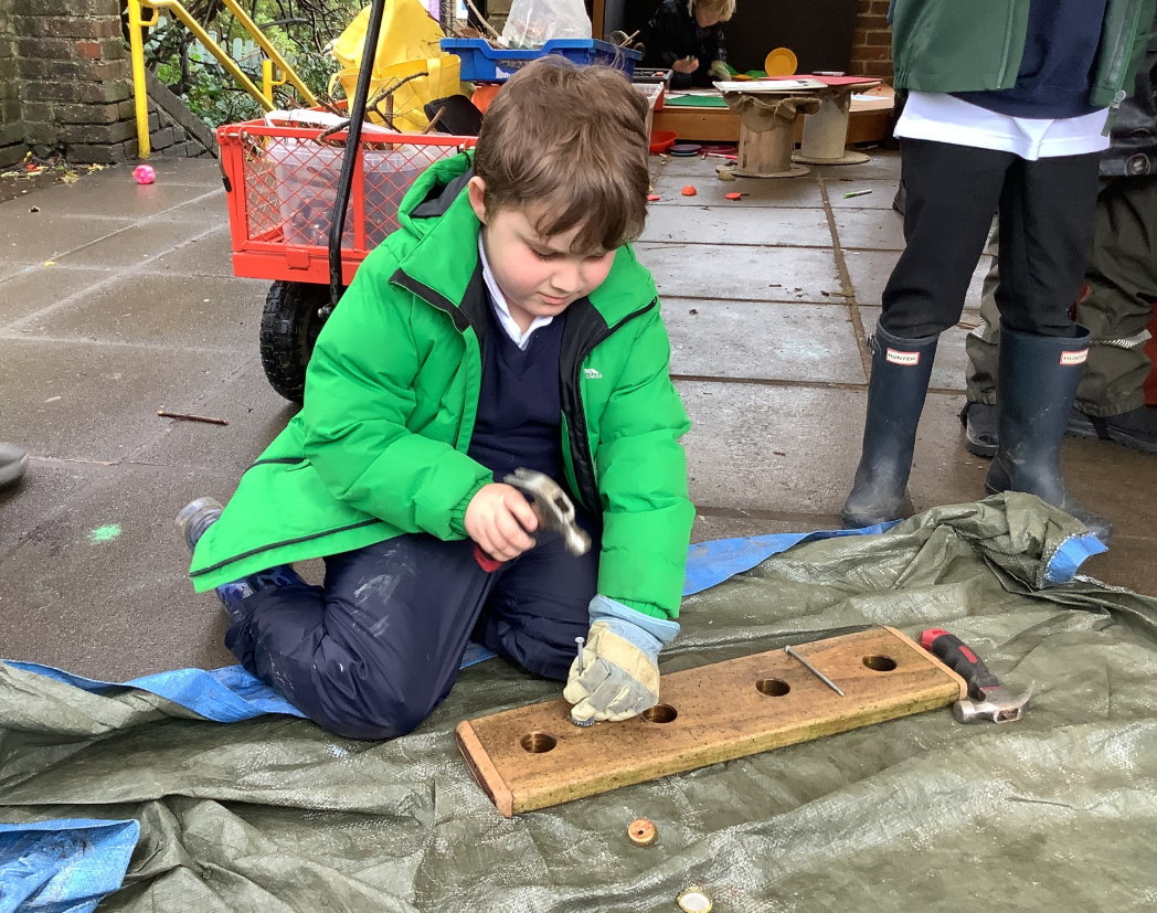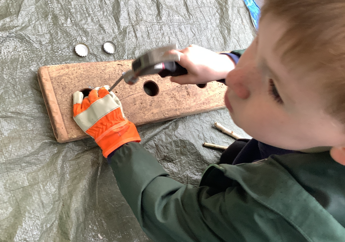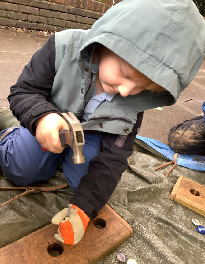 Our reception class Bugs have been making Bugs using a hammer and nails.
