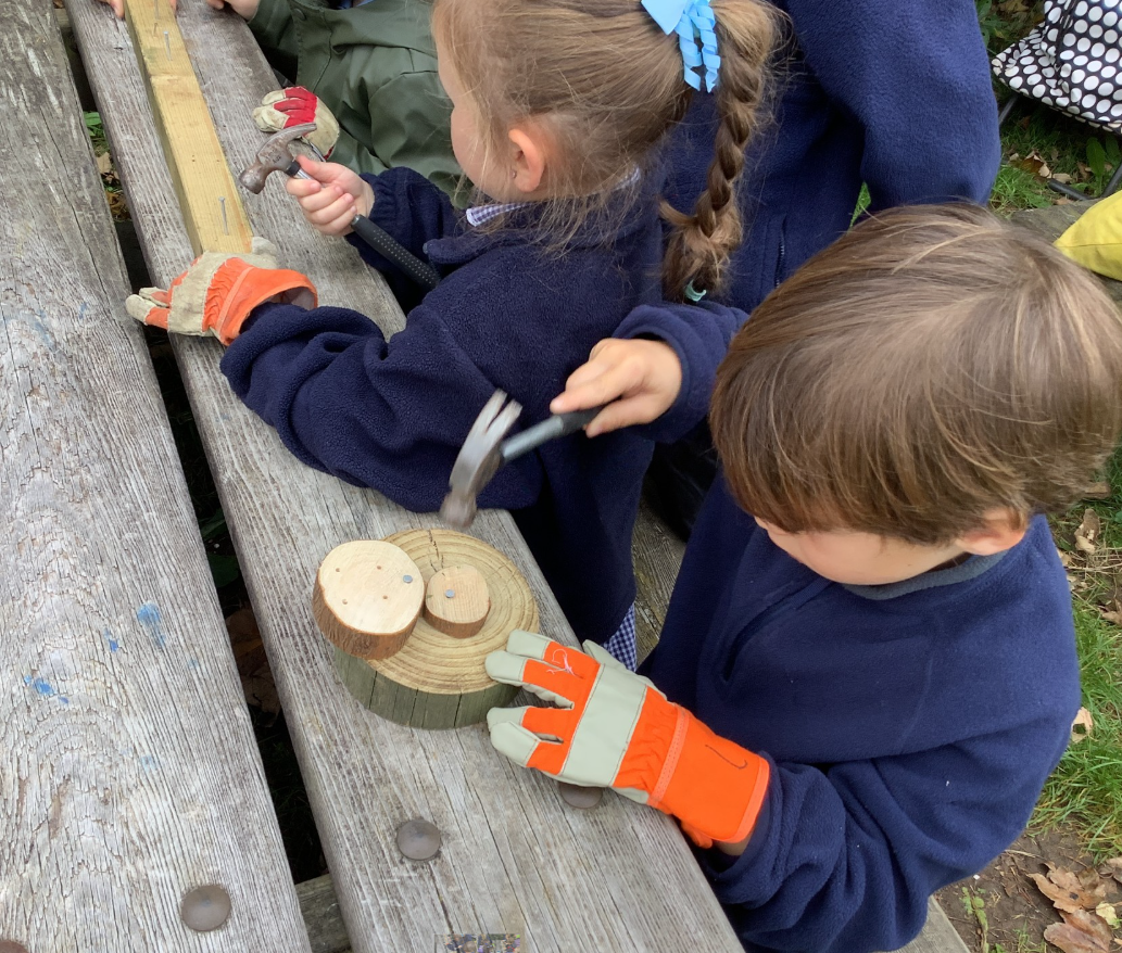 Y5 and Y6 have been using hammers, saws and nails to make funghi toadstools.