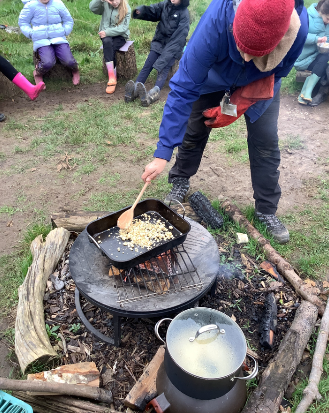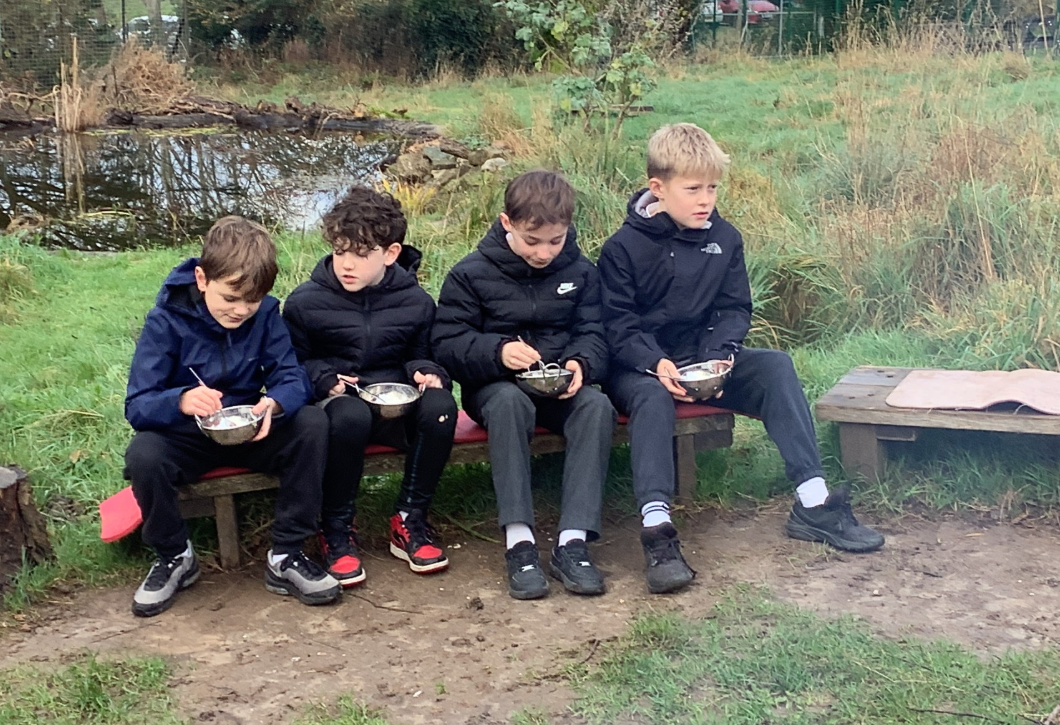 In their last Nature School session, Y5 and Y6 enjoyed making and eating apple crumble.