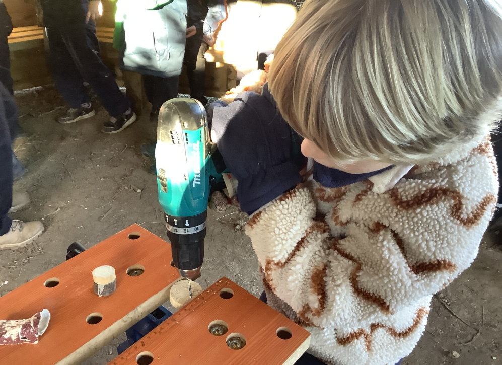 Y2 have been sanding and drilling wooden discs. This is in preparation for creating their snow people Christmas decorations next week.