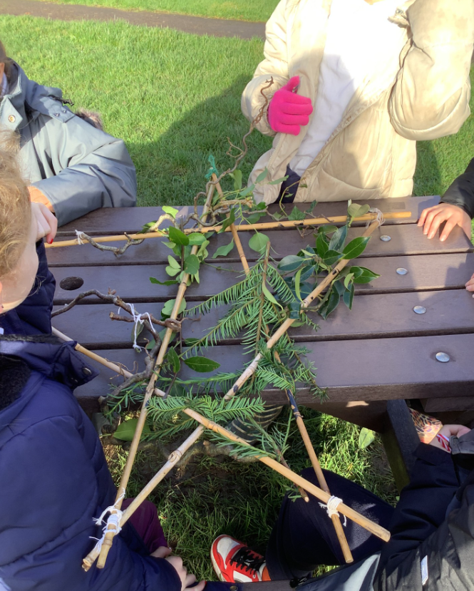 Year 4 have been enjoying making giant Christmas decorations using bamboo canes and natures ornaments from the school grounds.