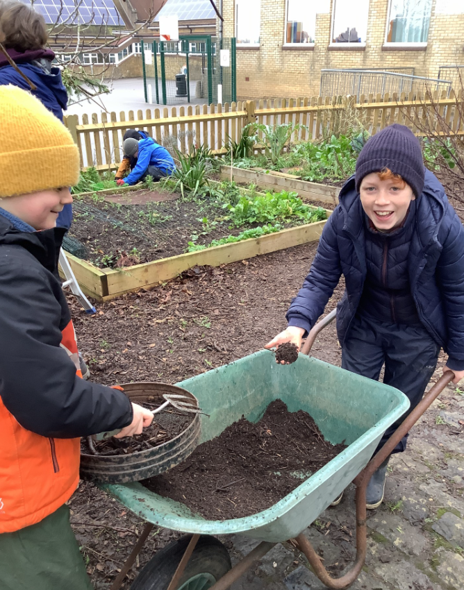 Our wonderful Y6 children have been helping us out with our kitchen garden renovations!