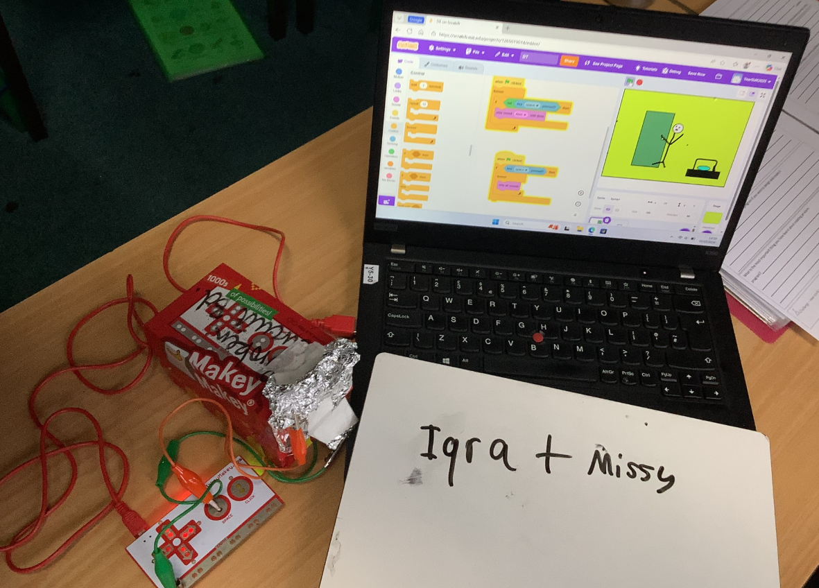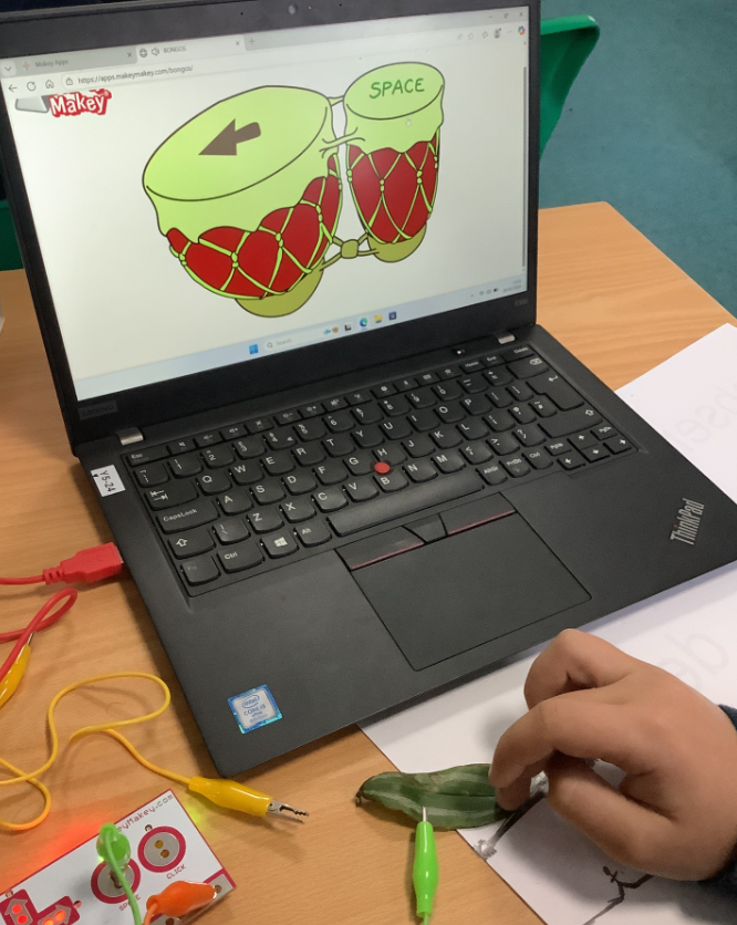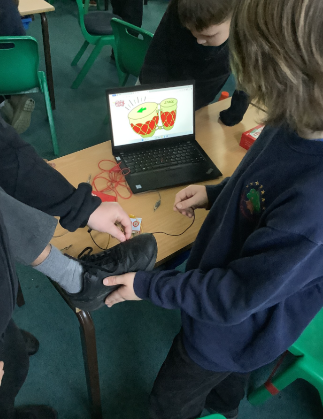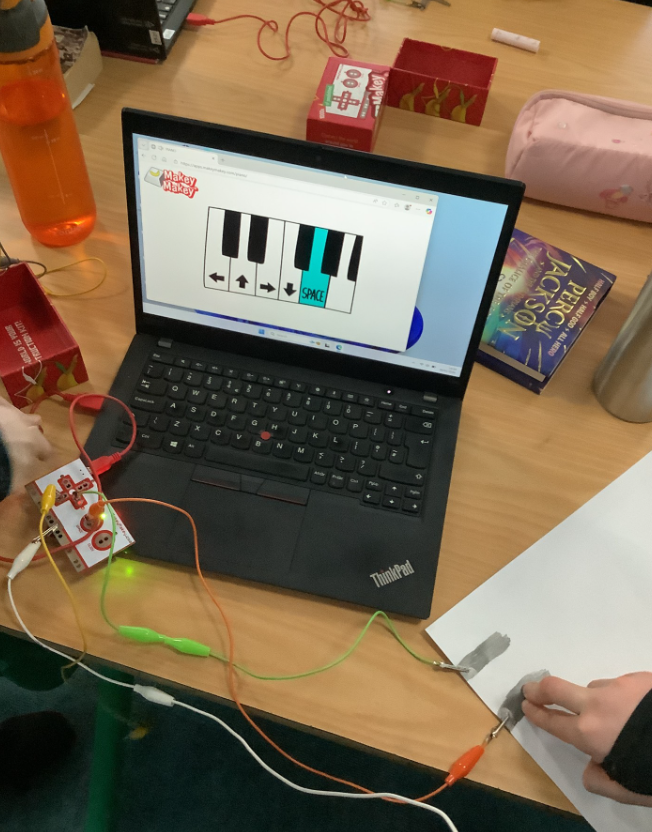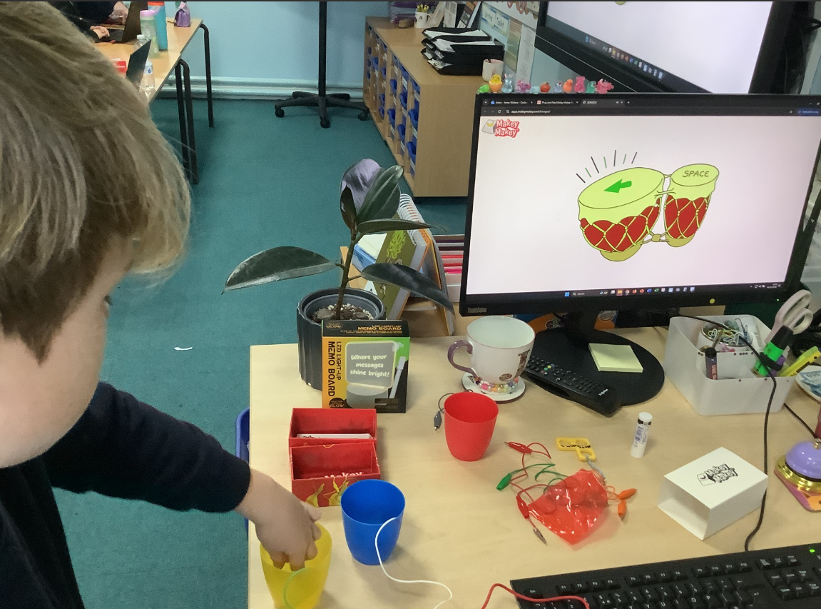 DT: We are learning about complex switches using the Makey-Makeys this half-term. This week, the children have been getting to grips with how to program and use them through playing with them and Scratch.