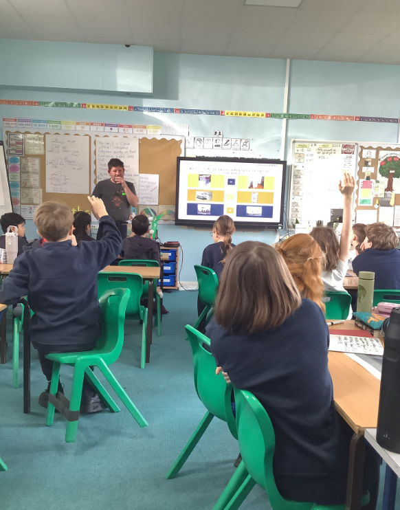 This week, we had an author come to visit us. Ramzee explained how he got into writing his own books, starting with his childhood obsession with comic books and then taught us cheats for how to draw using letters of the alphabet as a starting point. Lots of children bought signed copies of his book!