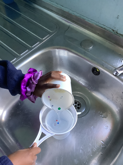 Environment: We have been doing a science experiment where we thought about how to separate materials that had been mixed together with water, using different equipment (see photos). We thought about why water is dirty for so much of the global population and how it could be made clean.