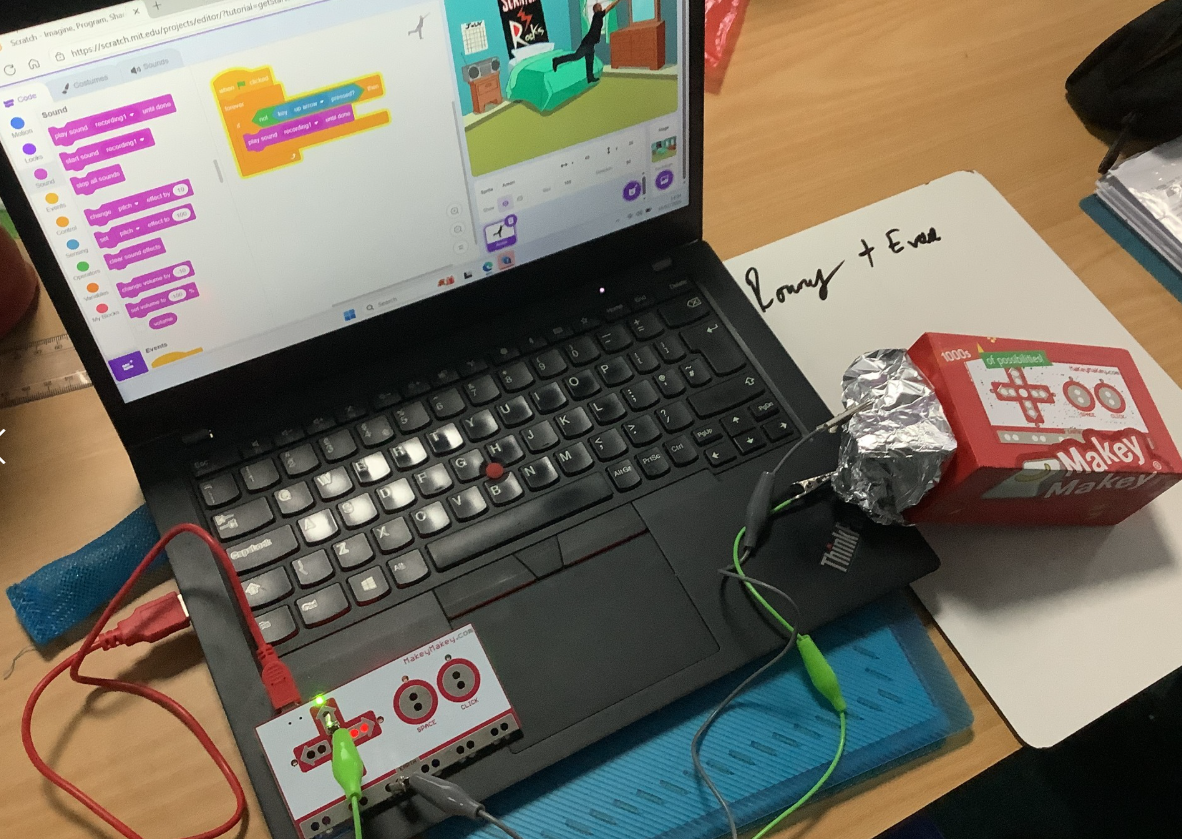 This week, the children have combined their knowledge of burglar alarms, homemade switches and Scratch coding to use their Makey-Makeys to make an alarm to prevent their teacher from breaking into a box!