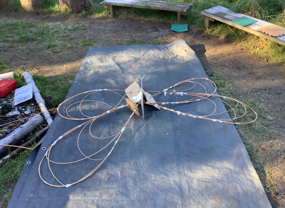 Y6 have been helping to create structures for a woodland walk. Here they are making wings for a dragonfly and for native moths, using willow and tissue paper.