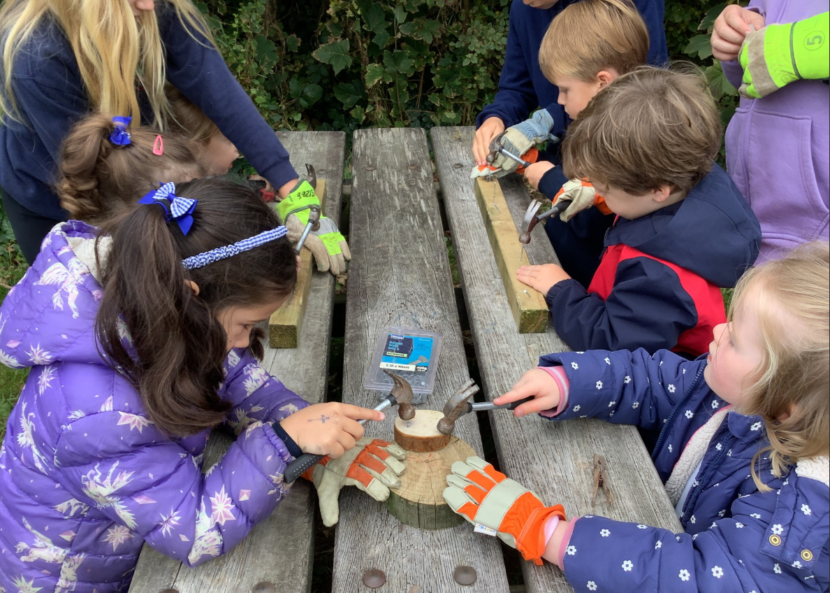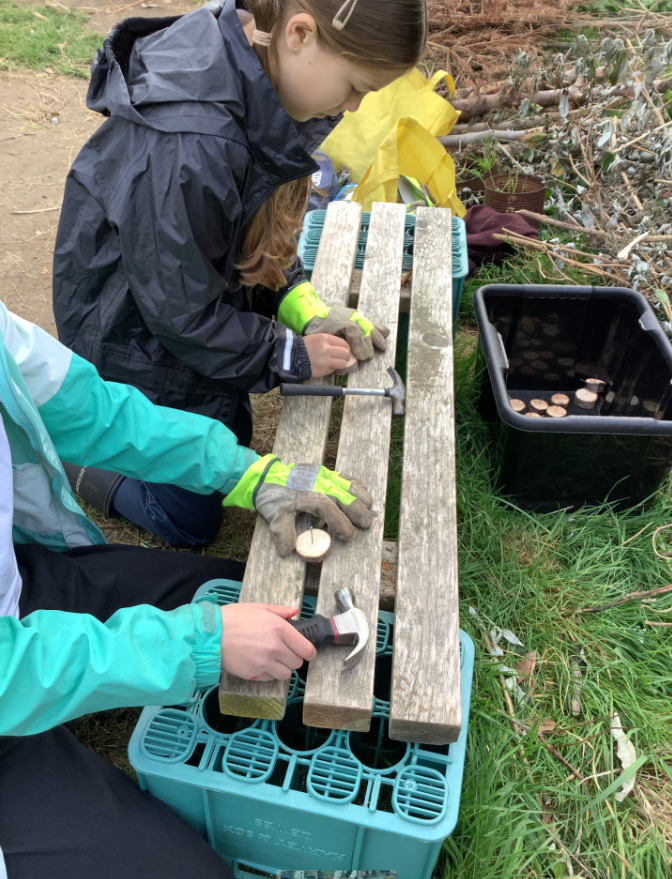 Y5 and Y6 have been using hammers, saws and nails to make funghi toadstools.