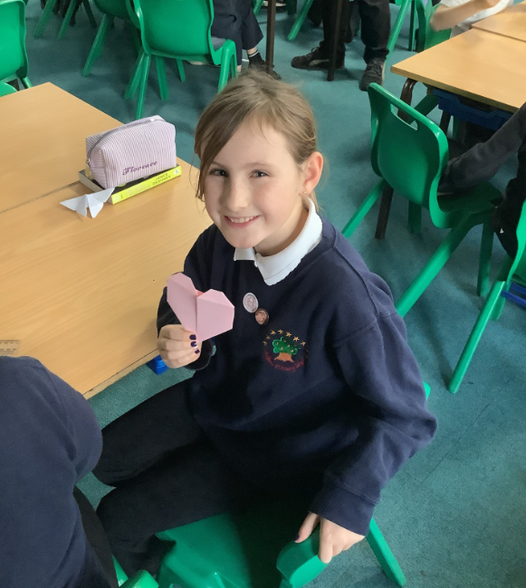 We have also been learning about and attempting to make origami ready for the art exhibition this weekend. We were visited by Michael Trew and each child has made a heart with a personalised message inside, ready for the exhibition.
